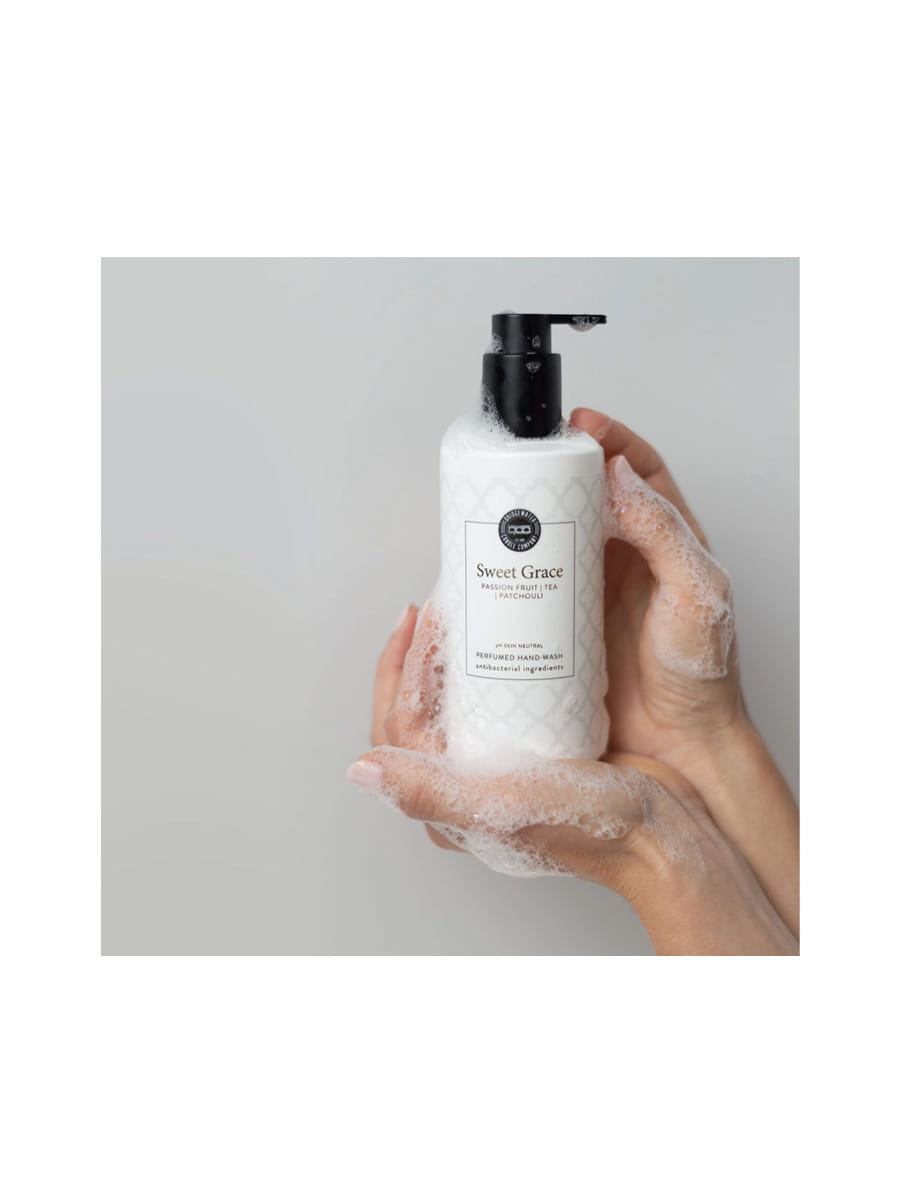 Mydło w płynie do dłoni o kultowym zapachu Sweet Grace amerykańskiej firmy Bridgewater Candle to energetyczne, odświeżające nuty zapachowe tworzące spójną i ujmującą kompozycję na którą składają się między innymi: marakuja, musująca herbata i paczula. Luksusowe mydło w płynie Bridgewater Sweet Grace doskonale oczyszcza i koi skórę otulając przyjemnym kwiatowo-drzewnym zapachem przywołującym radosne wspomnienia. Odświeżające nuty marakui i herbaty dodają chęci i energii do działania. Mydło Sweet Grace ze składnikami antybakteryjnymi zostało stworzone by zadbać o Twoje dłonie, a także by cieszyć Twoje zmysły cudownym zapachem, który dostarcza pozytywnej energii i poprawia nastrój.