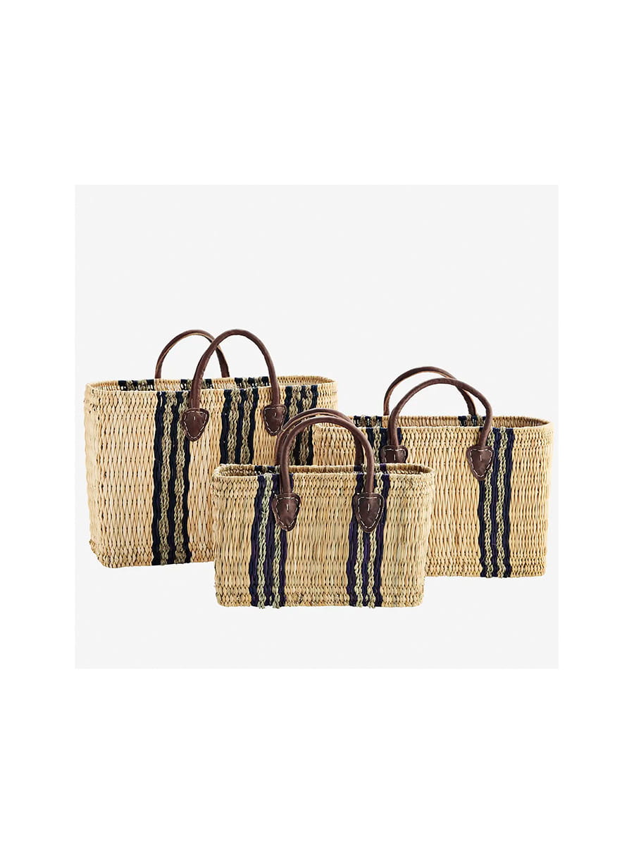 Ręcznie wyplatany kosz z trawy morskiej w paski w rozmiarze M, duńskiej marki Madam Stoltz - Skład Koncept