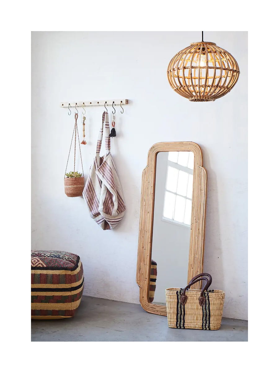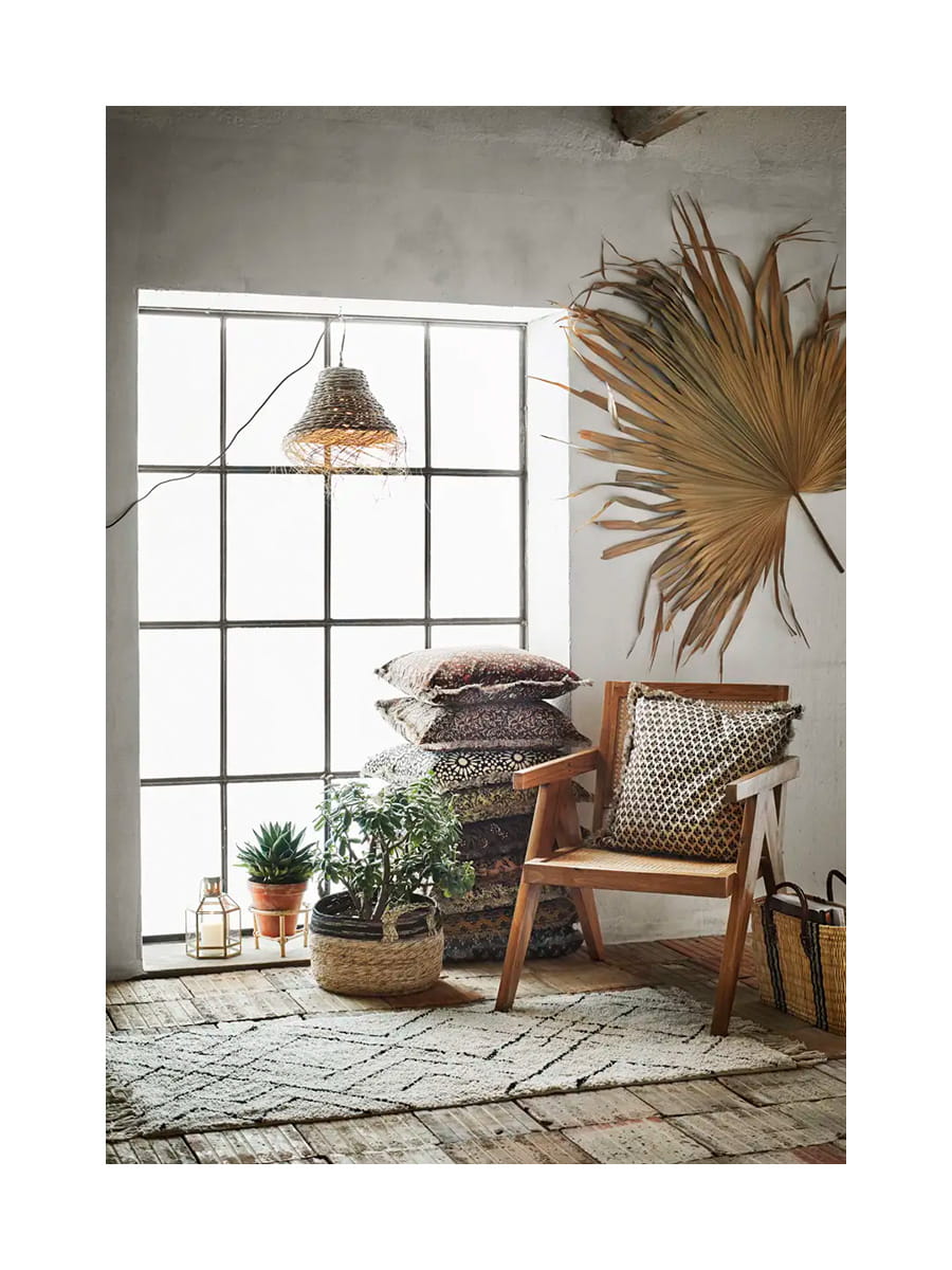 Ten piękny kosz z trawy morskiej ze skórzanymi rączkami i dekoracją w paski to szykowny i jednocześnie ekologiczny sposób przechowywania i transportu Twoich rzeczy. Świetnie nadaje się do przechowywania poduszek czy kocy, dekorowania, a także transportowania niezbędnych rzeczy z targu, na piknik i na plażę! Wyposażony w mocne uchwyty może być noszony w ręce. Z łatwością znajdzie swoje miejsce w Twojej kuchni, salonie czy sypialni, świetnie sprawdzi się też we wnętrzach w stylu boho.