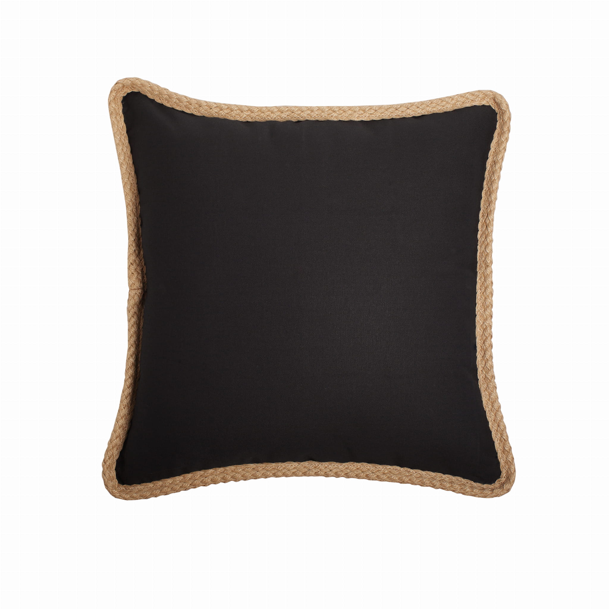 Poduszka bawełniana czarna z jutową lamówką, 50x50cm