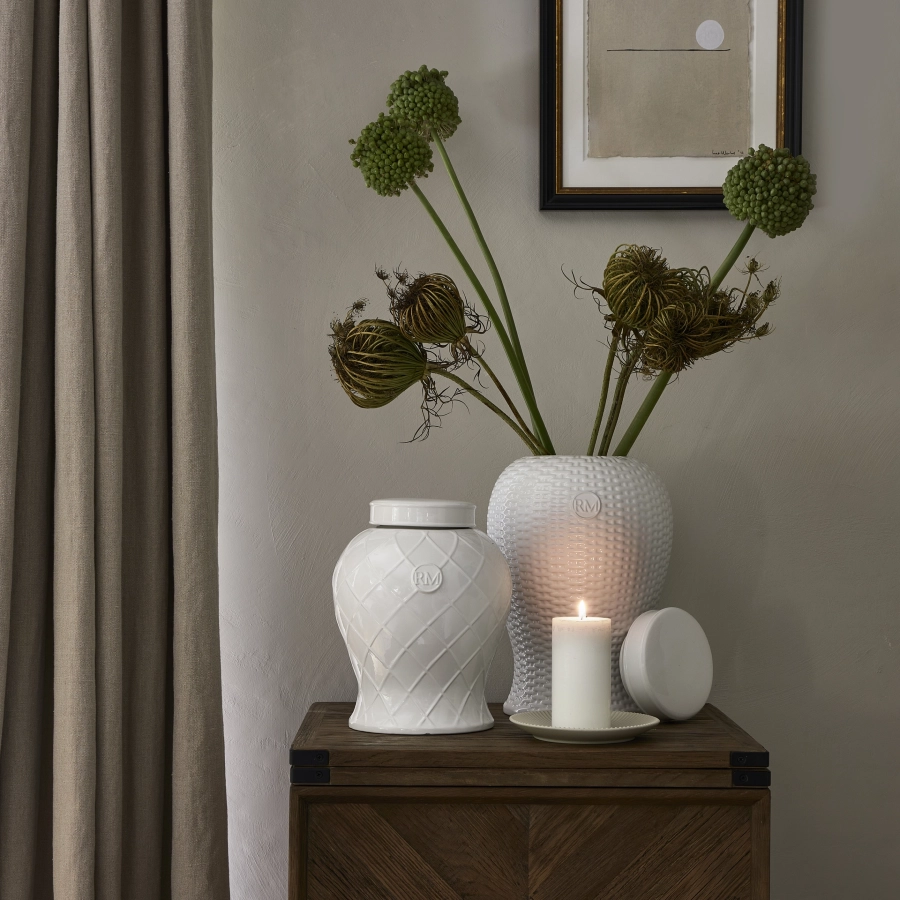 Wykonany z ceramiki pokrytej delikatnym białym szkliwem, emanuje spokojem i wyrafinowaną prostotą. Charakterystyczny kształt z szerokim brzuścem i zwężaną szyjką nawiązuje do tradycyjnych śródziemnomorskich naczyń, nadając mu ponadczasowego uroku. Wazon prezentuje się równie pięknie wypełniony świeżymi lub suszonymi kwiatami, jak i jako samodzielna ozdoba na komodzie, kominku czy półce. Doskonale wpisuje się w stylistykę klasyczną, Hampton oraz Riviera, harmonijnie komponując się z naturalnymi materiałami i jasnymi, neutralnymi barwami wnętrza.