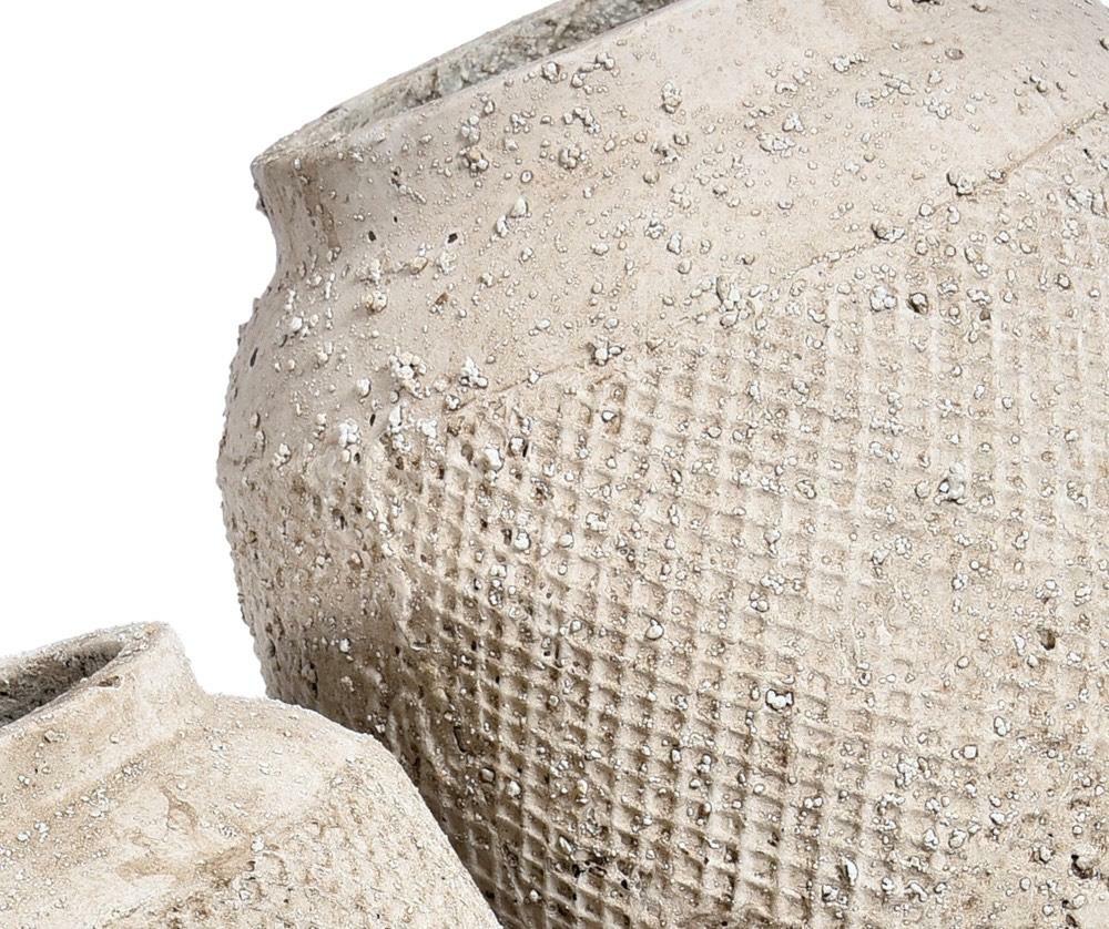 Prosty wazon Sirocco to piękny element wystroju wnętrza, który doda mu charakteru i pozwoli w efektowny sposób wyeksponować ulubione rośliny. Wazon wykonany jest z cementu włóknistego w odcieniach beżu i szarości , nieregularnym wzorem, dzięki czemu idealnie wpasuje się w każde wnętrze.