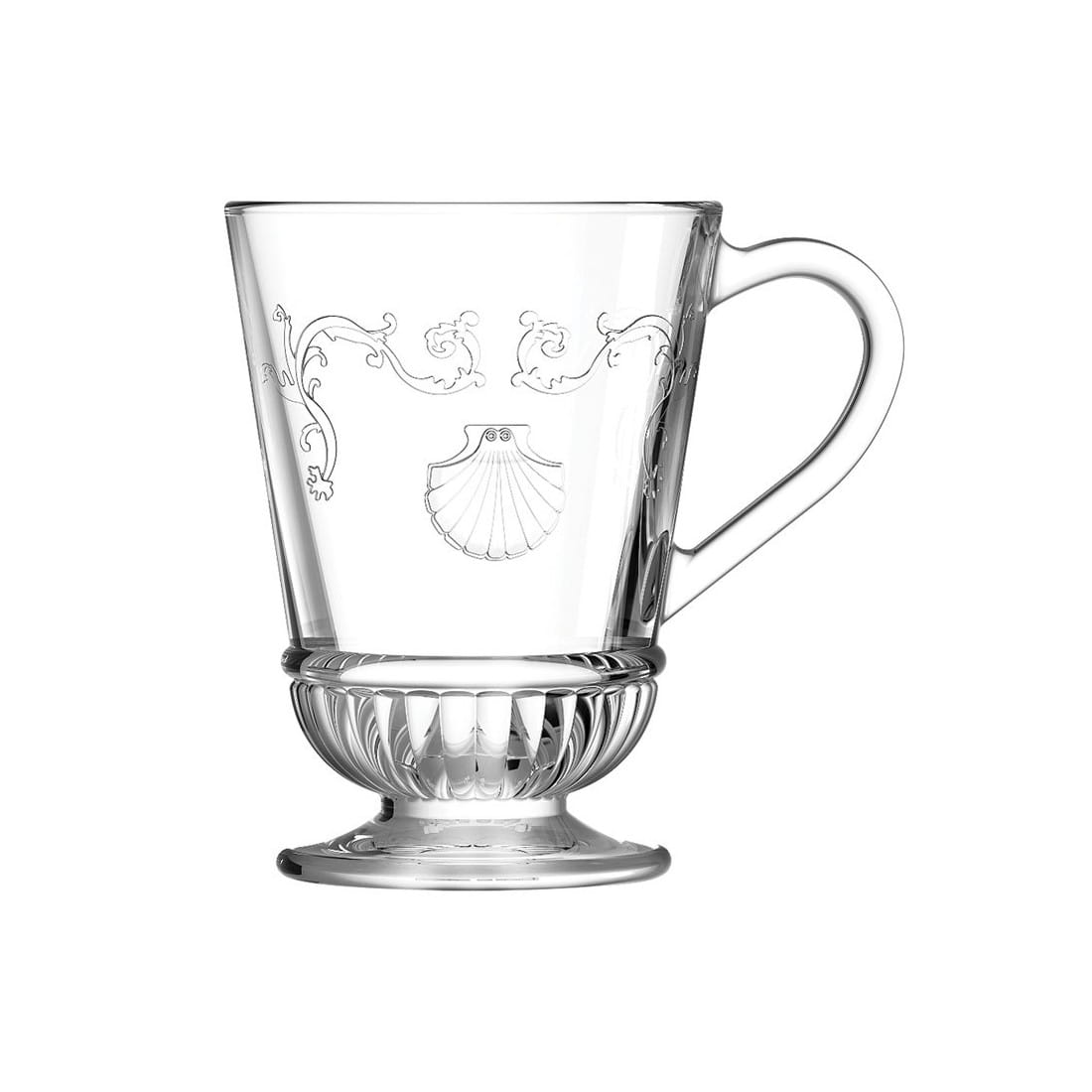 Szklanka z bogato zdobionej kolekcji Versailles francuskiej marki La Rochere, wykonana z prasowanego szkła i ozdobiony motywami barokowych kwiatów, pnącej się roślinności i przegrzebków. Doskonale sprawdzi się do serwowania zimnych i ciepłych napojów.